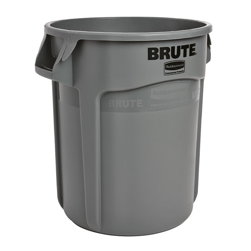 Plasttunna Rubbermaid Brute, 121 L, grå. Extremt robust behållare för avfallssamling, förvaring eller transport. Tillverkad av återvinningsbar, brottsäker plast (polyeten). Slagtålig och stöttålig. Temperaturbeständig från -29 °C till +60 °C. Enkel att stapla med stora handtag. Hög stabilitet med kantförstärkningar och dubbla ribbor i botten. Stort handtag gör att behållarna är enkla att hantera även med handskar. Enkla att stapla utan att handtagen kilar fast. Volym från 37 liter till 208 liter.