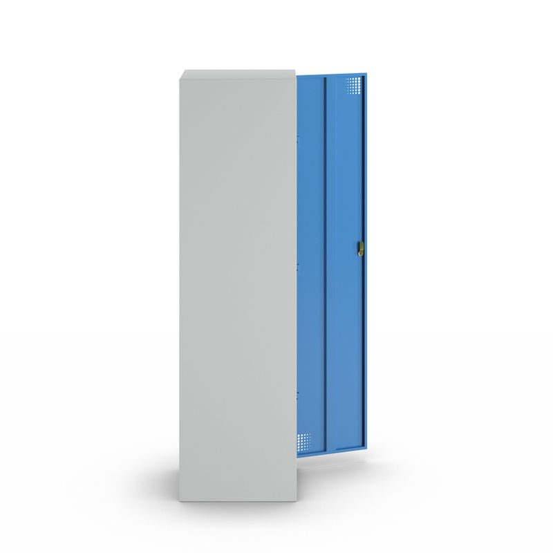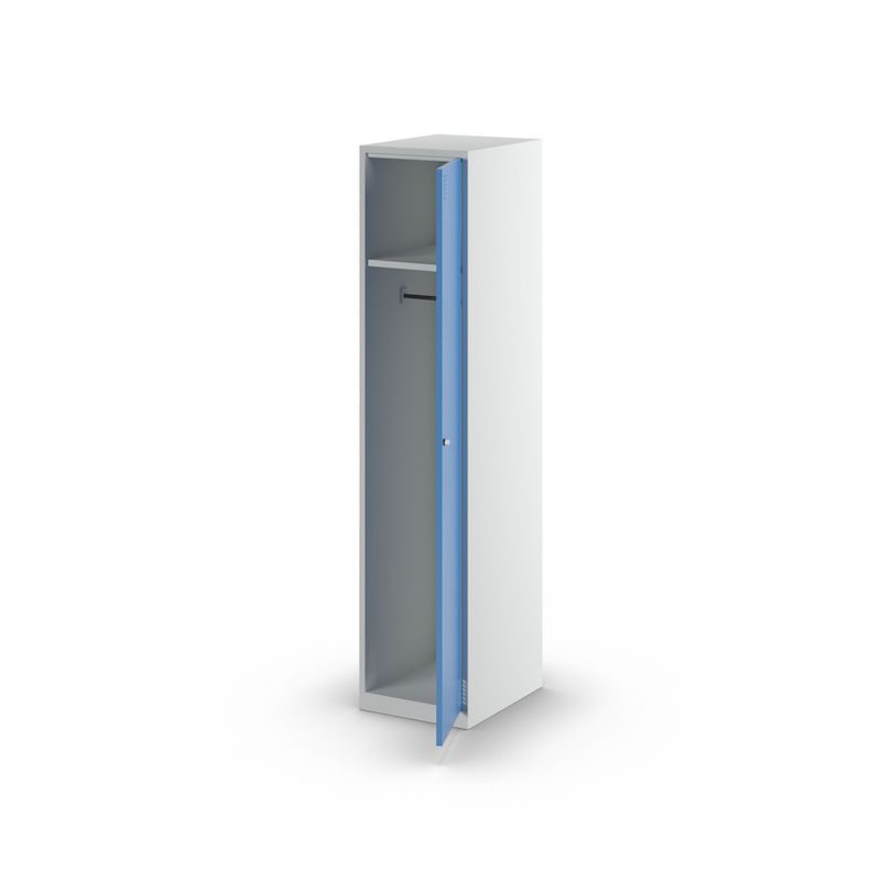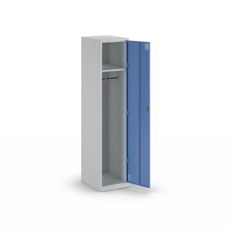 Stålskåpet Alvina har en praktisk hatthylla med två klädstänger inklusive krokar och en perforerad dörr som säkerställer optimal ventilation av dina kläder.