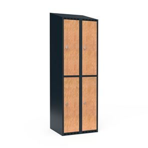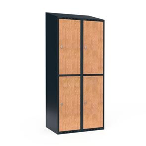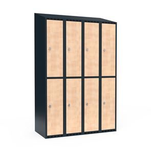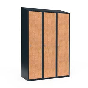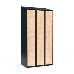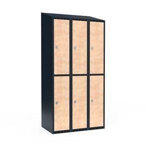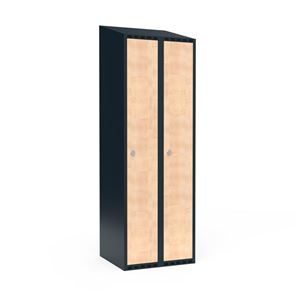 Klädskåp Fydor FFF, 600x550x1900 mm, 2 dörrar i 2 skåp, sluttande tak, ant/björk. Med Fydor-serien får du ett klassiskt men modernt helsvetsat omklädningsskåp med hög kvalitet och säkerhet.