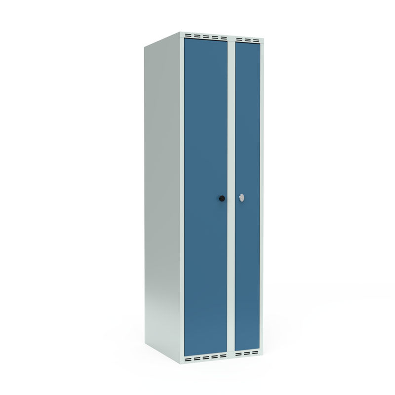 När du har behov av att separera arbetskläder från privata är klädskåp med pardörrar en naturlig lösning. Klädskåp med pardörrar ger dig två fullhöjdsfack med hatthylla och klädstång men bara ett lås för dörrarna.
