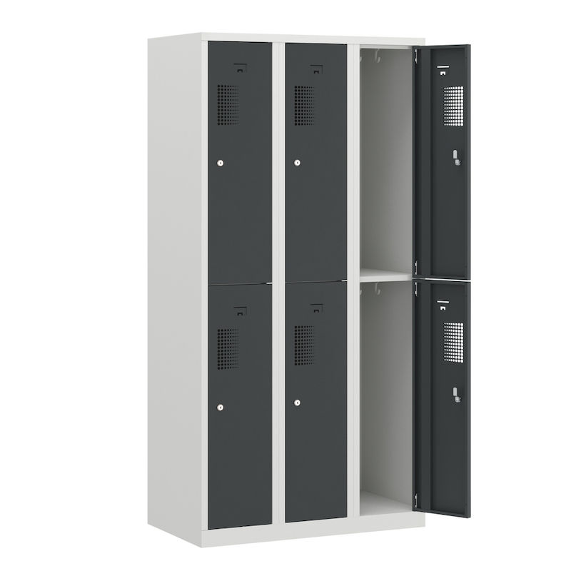 Klädskåp med två fack Amsterdam, 3 sektioner, bredd 900 mm, 6 fack, ljusgrå/basaltgrå.