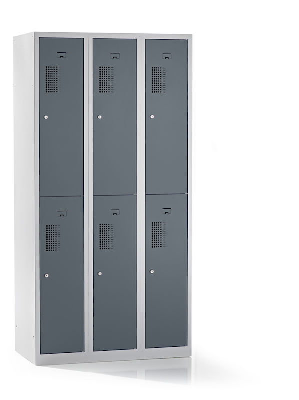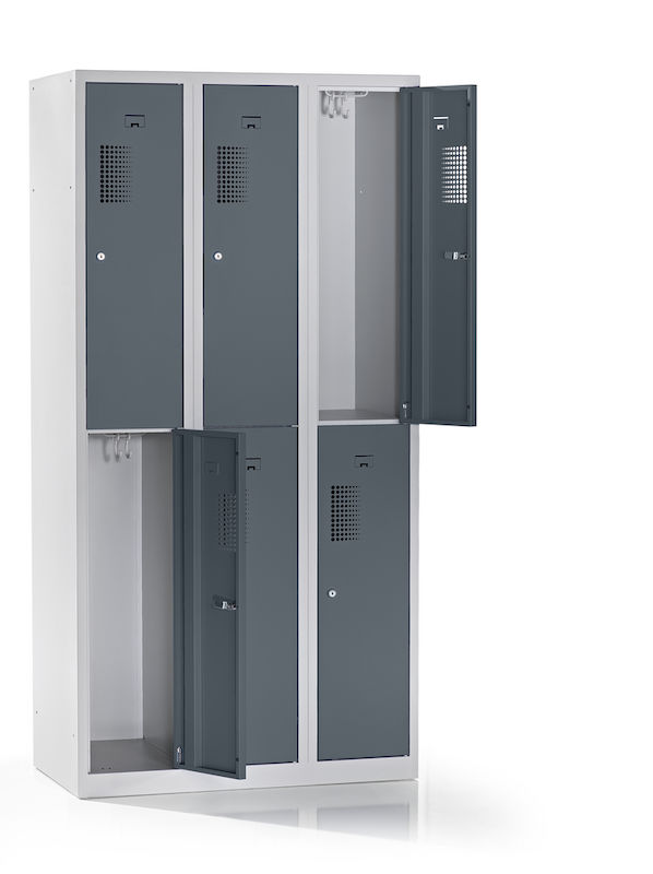 Fackskåpet övertygar genom sin robusta konstruktion av pulverlackerat stål, vilket gör det extra motståndskraftigt mot repor och korrosion. Placeringen av facken ovanpå varandra minskar platsbehovet och passar perfekt i verkstäder, idrottsanläggningar eller lager. Tack vare den integrerade perforeringen säkerställs optimal luftcirkulation.