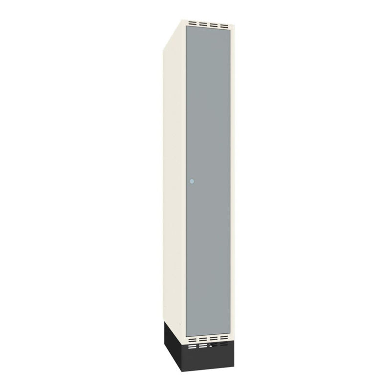 Helskåp kommer med hatthylla och klädstång inklusive ankarkrokar, och 2-delat skåp med klädstång inklusive ankarkrokar som standard, skåp med tre, fyra och fem fack i höjd är utan inredning. 18 mm tjocka dörrar av specialprofilerad och pulverlackerad stålplåt, infällda i karmen med dolda gångjärn. Dörrstopp vid 90 grader samt invändig förstärkningsplåt runt låshålet. Slät skåpbotten utan trösklar som underlättar städning. Sockel som standard lackerad i svart färg.
