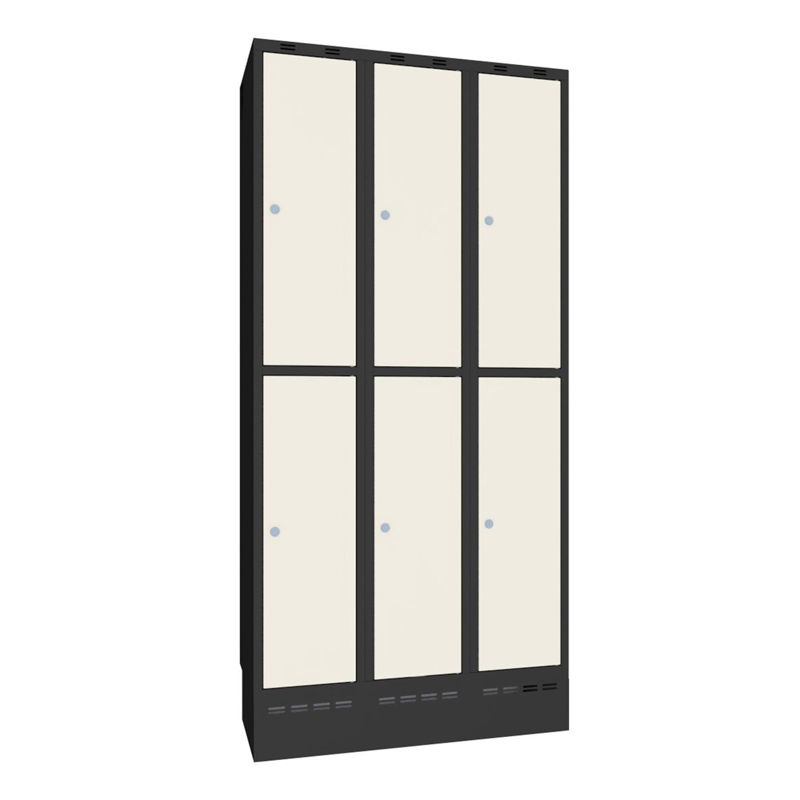 Klädskåp Sonesson Flex, 6 dörrar i 3 skåp, BxD 300x550 mm/skåp, vit/svart. Förvaringsskåp som finns i flera olika färger och material att välja mellan.