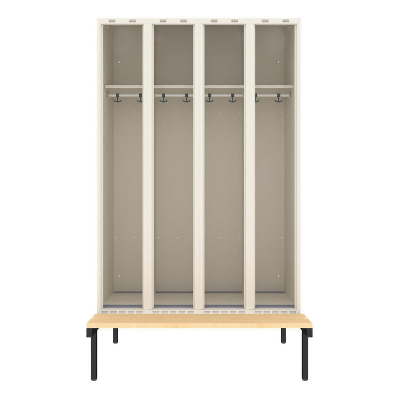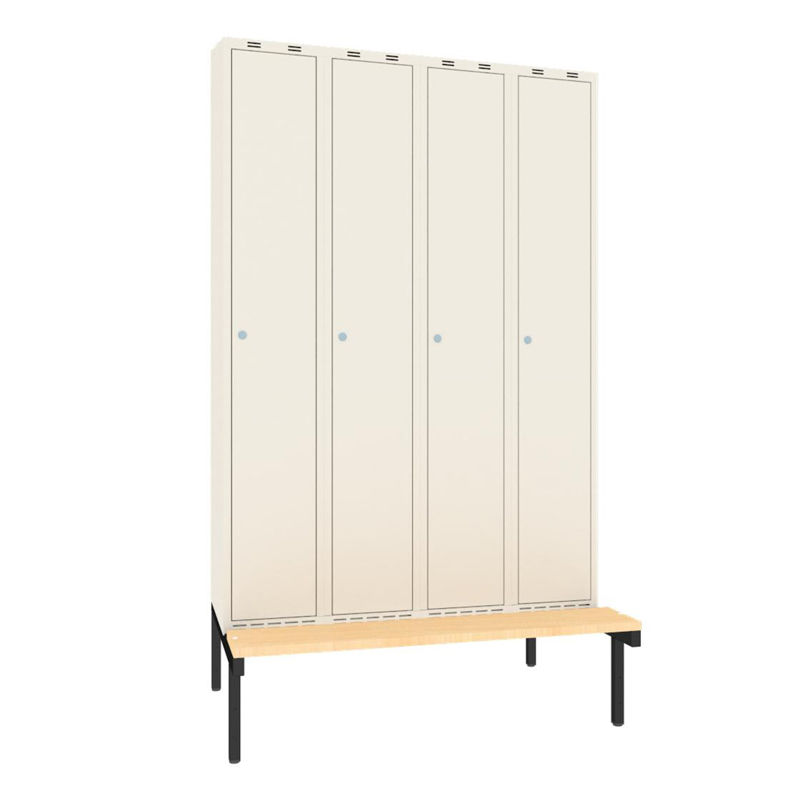 Klädskåp Sonesson, BxDxH 1200x550x1900 mm, bänkstativ, 4 dörrar i 4 skåp, vit/vit
