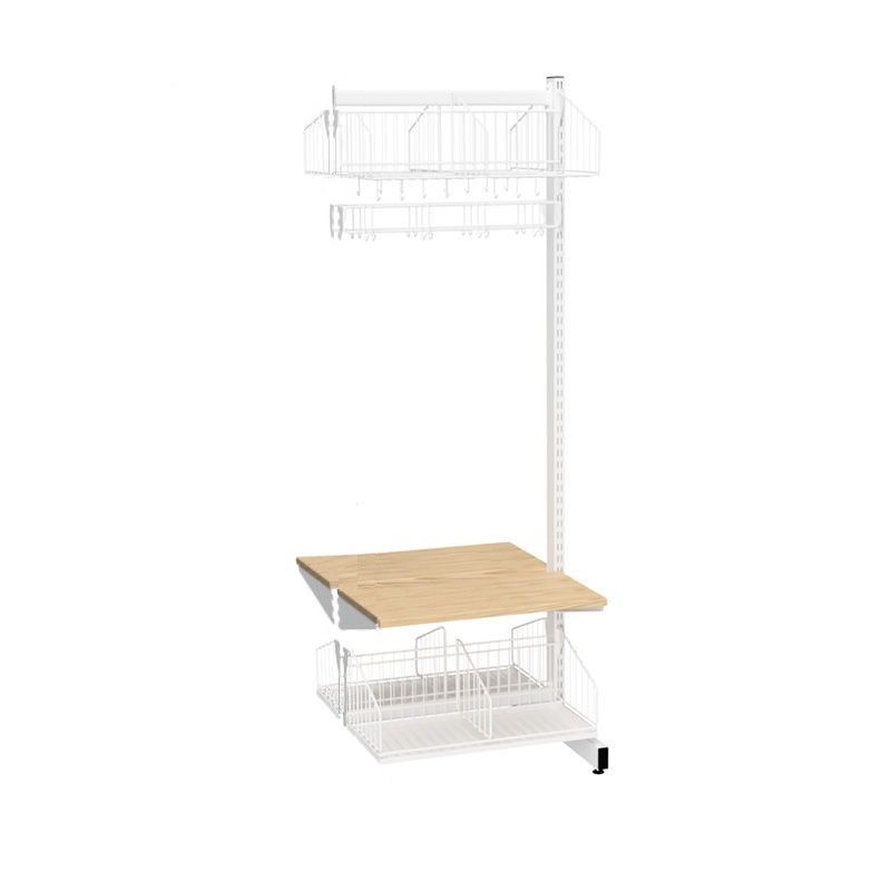 Klädfack Savalen, dubbelsidig, B 600 mm, vit, modell A, utbyggnad. Praktiskt och smidigt klädfack med flera olika utrustningsalternativ. Finns både som golvställ och väggställ. Bygg din egen lösning med grundsektioner och utbyggnadssektioner. Utrustningen är flyttbar i steg om 25 mm. Golvställen är utrustade med ställfötter för ojämnt underlag. Modell A: Skohylla med dropplåt, sittbänk, kroklist och hatthylla i trådutförande. Modell B: Skohylla med dropplåt i trådutförande, sittbänk och kroklist i björk. Modell C: Skohylla med dropplåt och klädfack i perforerad plåt, sittbänk och kroklist i björk. Modell D: Vinklingsbar skohylla och kapprumshylla i perforerad plåt, sittbänk i björk.