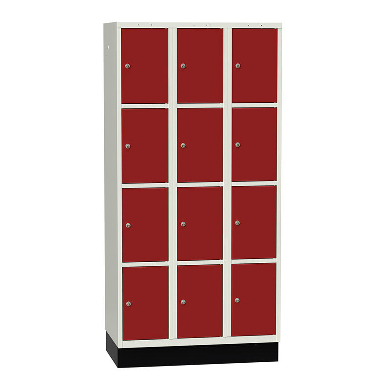 12 dörrar i 3 skåp, bxdxh 900x550x1900 mm, röd/vit