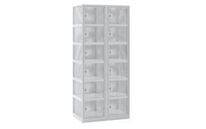 Småfacksskåp Klynne, BxDxH 600x500x1800 mm, klinka, 12 dörrar i 2 skåp, grå/basaltgrå. Ett klädskåp som du kan se in i med sin perforerade dörr, vilket ger optimal ventilation för arbetskläder, idrottskläder och idrottsutrustning. Levereras monterad med en 60 mm integrerad sockel. Finns i 2 olika fackbredder, 300 mm och 400 mm. Stommen är pulverlackerad i grå färg (RAL 7035) och dörrarna i blå (RAL 5012), grå (RAL 7035) eller basaltgrå (RAL7012) färg. Skåpet är låsbart med roterande säkerhetsklinka för hänglås eller cylinderlås med 2 nycklar. Huvudnyckel finns att köpa som tillbehör. Finns i flera olika storlekar.