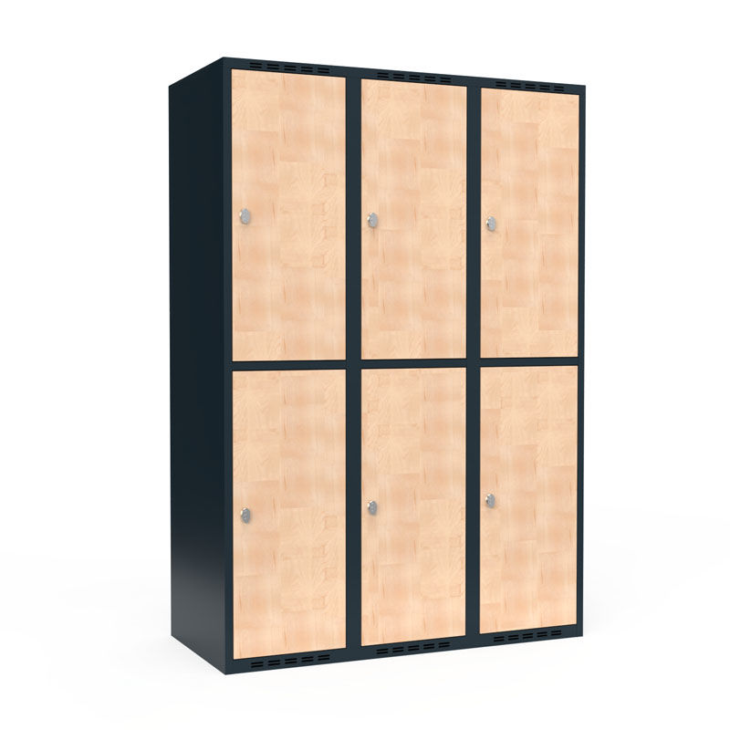 Klädskåp Fydor FFF, BxDxH 1200 x550x1752 mm, 6 dörrar i 3 skåp, plant tak, ant/björk. Med Fydor-serien får du ett klassiskt men modernt helsvetsat omklädningsskåp med hög kvalitet och säkerhet.