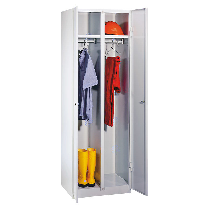 Plåtskåp med 2 garderober, BxDxH 600x500x1800 mm, ljusgrå dörrar. Ett plåtskåp för all typ av användning. Stabil, svetsad konstruktion av stålplåt med en brännlackering av hög kvalité.