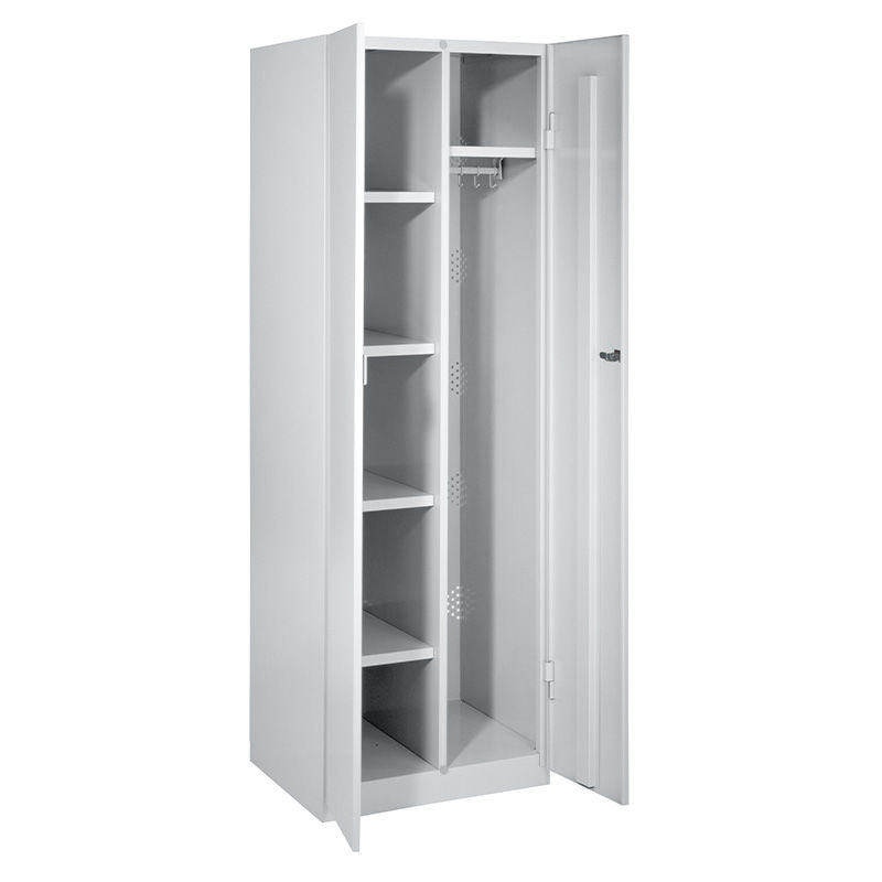 Plåtskåp med 4 hyllplan och 1 garderob. Ett plåtskåp för all typ av användning. Stabil, svetsad konstruktion av stålplåt med en brännlackering av hög kvalité.