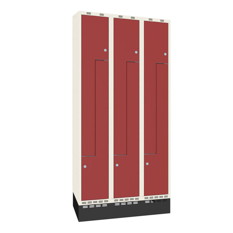 Z-skåp Sonesson, sockel, B 300 mm, 6 dörrar i 3 skåp, röd/vit