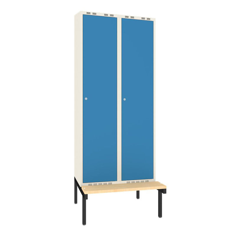 Klädskåp Sonesson, BxDxH 800x550x1900 mm, bänkstativ, 2 dörrar i 2 skåp, blå/vit