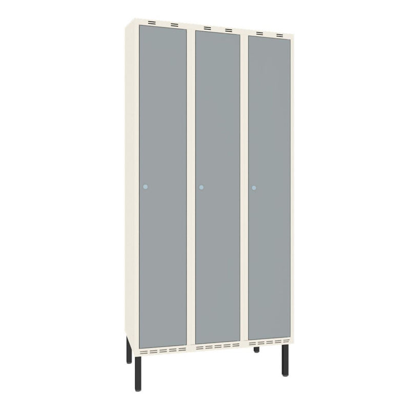 Klädskåp Sonesson, BxDxH 900x550x1900 mm, benstativ, 3 dörrar i 3 skåp, grå/vit