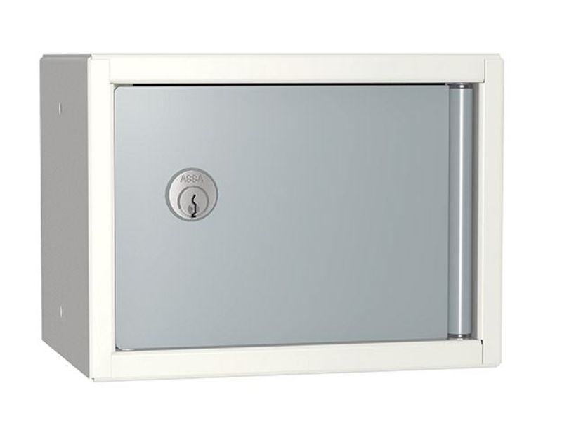 Värdefackskåp Sonesson Mini, BxDxH 200x150x150 mm, grå/vit. Värdefackskåp med cylinderlås. Huvudnyckelsystem finns som tillbehör.
