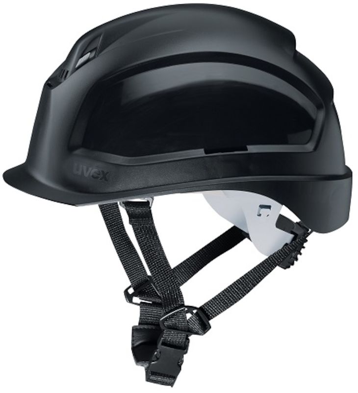 Skyddshjälm Pheos, svart, med ventilationsöppning och pannlampsfäste. Modernt designad skyddshjälm med många funktioner. Ställbar med ratt. 4-punkts hakband. Tre inställbara ventilationsöppningar släpper in luft och bidrar till temperaturregleringen. Fäste för montering av hjälmkåpor och pannlampa.