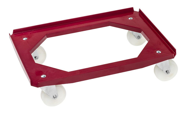 Backvagn Dag, LxB 600x400 mm, röd. Liten och smidig backvagn med högkvalitativ ram i plast. Öppna hörn gör att vagnen är lätt att rengöra. Öppen botten med bred kant.