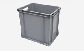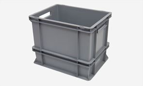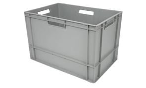 Rejäl och stapelbar plastlåda enligt eurostandard. Tillverkad i livsmedelsgodkänd PP-plast (polypropylen) med kraftiga förstärkningar på utsidan. Tät modell med slät insida och grepphandtag på utsidan. Finns i flera storlekar med allt från små plastlådor med volym från 5 liter till en stor plastlåda som rymmer upp till 76 liter.