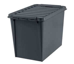 Plastlåda med lock Smartstore Recycled, LxBxH 720x400x380 mm, 70 liter, 10 st eller fler. Plastlådan är producerad av 100% återvunnen plast.
