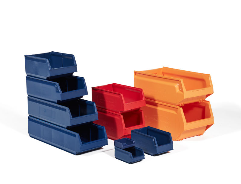 En stapelbar, profilerad skalkonstruktion med hög vridstyvhet. Stapelbara med stor innervolym, ideliska för smådelsförvaring i form av skruvar, muttrar eller liknande.