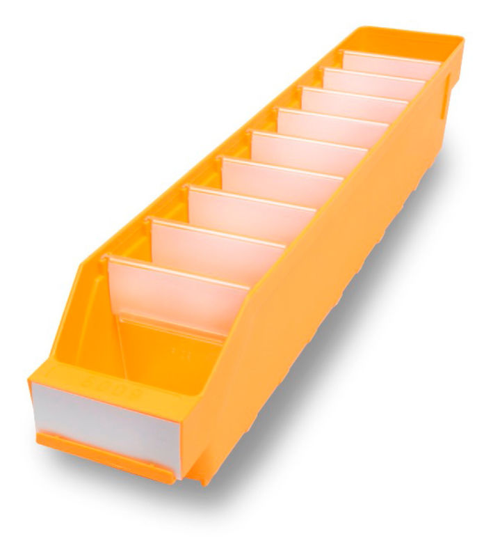 Lagerlåda Stemo 500x90x95 mm, 40-pack, gul. Smarta hyllanpassade lagerlådor för olika hylldjup som passar alla typer av hyllställ. Lagerlådan är miljöanpassad, tillverkad i miljövänlig polypropen och återvinningsbar.