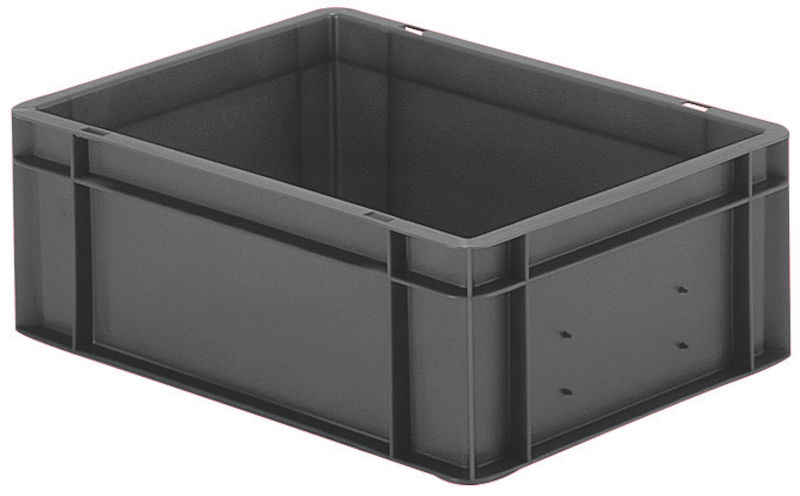Plastback Teff med tät sida och botten, LxBxH 400x300x145 mm, grå, 5-pack. För så gott som varje behov på lagret, i produktionen eller vid transport. Av högvärdig, livsmedelssäker polypropen (PP-plast) med hög stabilitet.