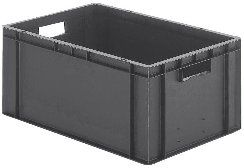Plastback Teff med tät sida och botten, LxBxH 600x400x266 mm, grå, 5-pack. För så gott som varje behov på lagret, i produktionen eller vid transport. Av högvärdig, livsmedelssäker polypropen (PP-plast) med hög stabilitet.