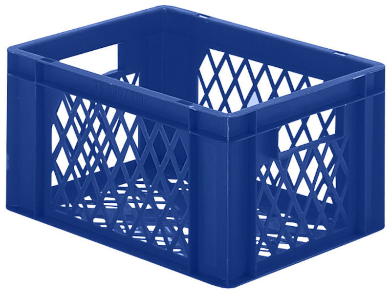 Plastback Teff med perforerad sida och botten, LxBxH 400x300x210 mm, blå, 5-pack. För så gott som varje behov på lagret, i produktionen eller vid transport. Av högvärdig, livsmedelssäker polypropen (PP-plast) med hög stabilitet.