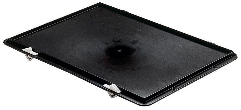 Lock till Plastback Teff, LxB 400x300 mm, 5-pack. Fällbart lock av svart polypropen. Standardutförande med 2 gångjärnsclips och 2 låsreglar. Säljs i 5-pack, finns i flera olika storlekar.