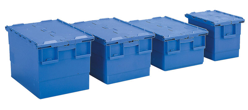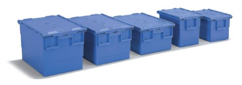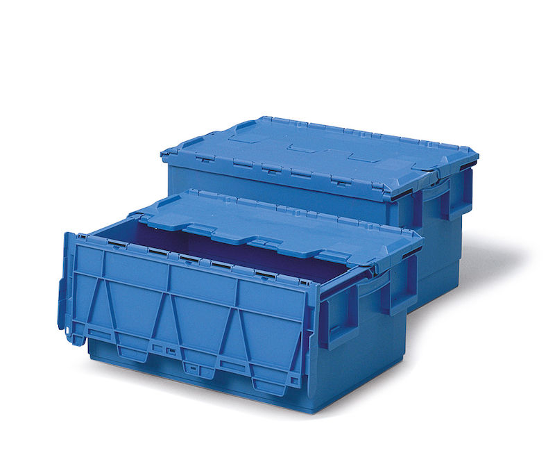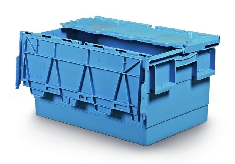 Transportlåda Integra, med inbyggt lock, 55 l. Plastback med inbyggt lock, greppvänliga handtag och etiketthållare