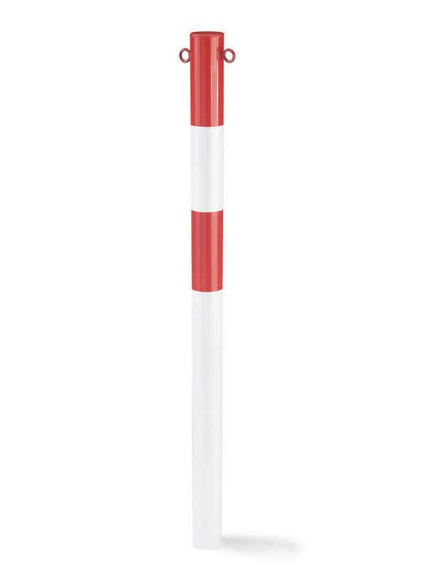 Avspärrningsstolpe Jakob, för betonggjutning, Ø 76 mm, röd/vit, plastöverdragen. Stolpe med 2 öglor.