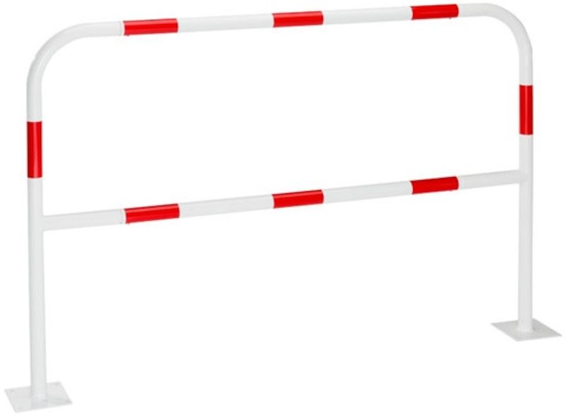 Kraftiga skyddsbyglar i varmförzinkat stål med eller utan pulverlackering ovanpå. Höjd över golv 1000 mm. Av stålrör, ø 42, 4 mm. Med golvplatta 150 x 150 mm för fastbultning eller för ingjutning i betong (mått under golv 200 mm).