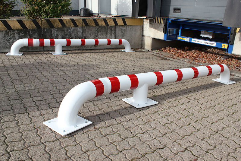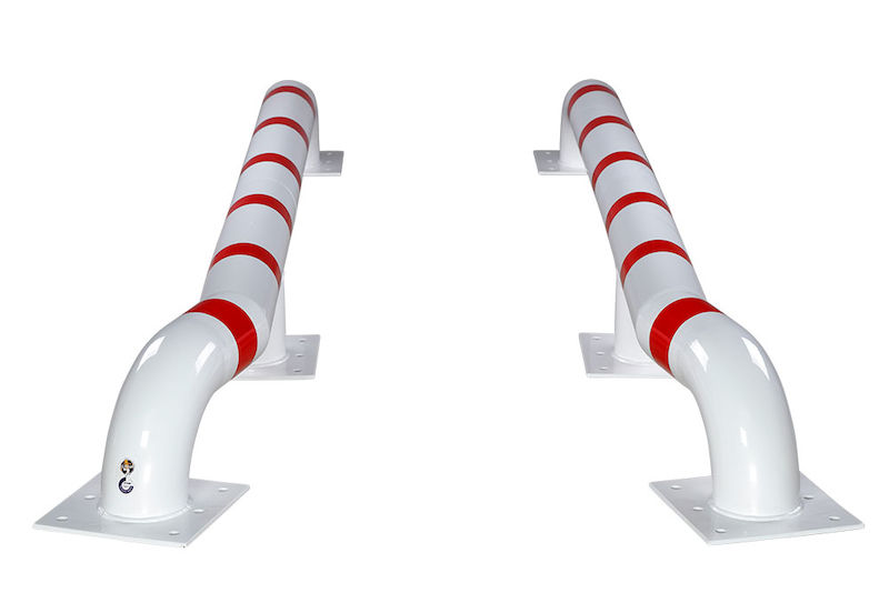 Påkörningsskydd Rio positioneringshjälp för lastbilar, röd/vit, markmontering, par vänster/höger