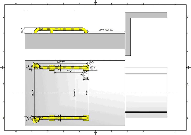 Kraftig konstruktion med stålrör Ø159 mm som antingen monteras på mark med expanderbult eller gjuts ned i betongen.