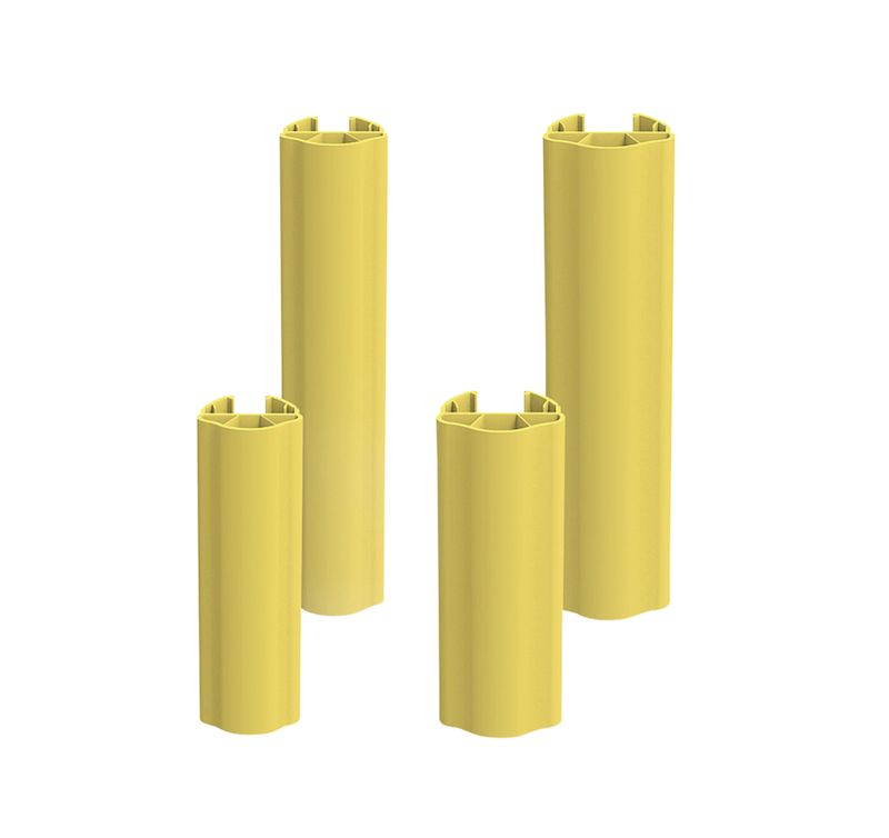 Tillverkade av Tillverkade av 100% återvinningsbara High-density polyethylene (HDPE). Stolpskydden finns i tre höjder och två flexibla bredder för att täcka in alla modeller av pallställsgavlar.