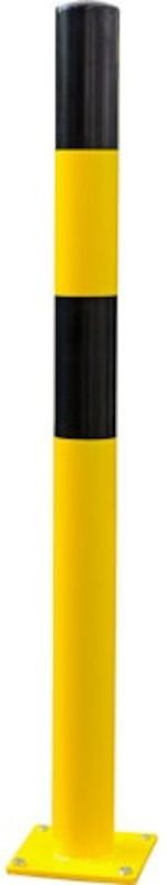 Trafikpollare Janina, Ø 90 mm, väggtjocklek 3,6 mm, för betongfäste. Gul plastbeläggning med svarta varningsmarkeringar.