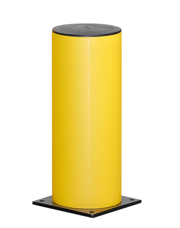 Tillverkad av HPDE plast med fotplatta av stål, pollaren är 100% återvinningsbar. I jämförelse med stålpollare så är det väldigt liten kraft förankrad i marken.
