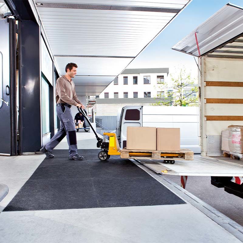 Halksäkra golvplattor för ramper, plattformar, lastbryggor, broar, gångar och trappor. Stöttåliga och splittersäkra halkskyddsplattor som även är överkörningsbara. Golvplattorna skruvas enkelt på befintligt golv. Lämplig även för ojämna golv. Passar både för inomhus och utomhusbruk. Motståndskraftig mot de flesta lösningsmedel och kemikalier. Lätt att rengöra med en högtryckstvätt. Temperaturbeständig från –20° till +60°C. Halkskydd R13 enligt EN13552. Flamskyddad enlighet brandskyddsklass Bfl-S1 i EN13501.