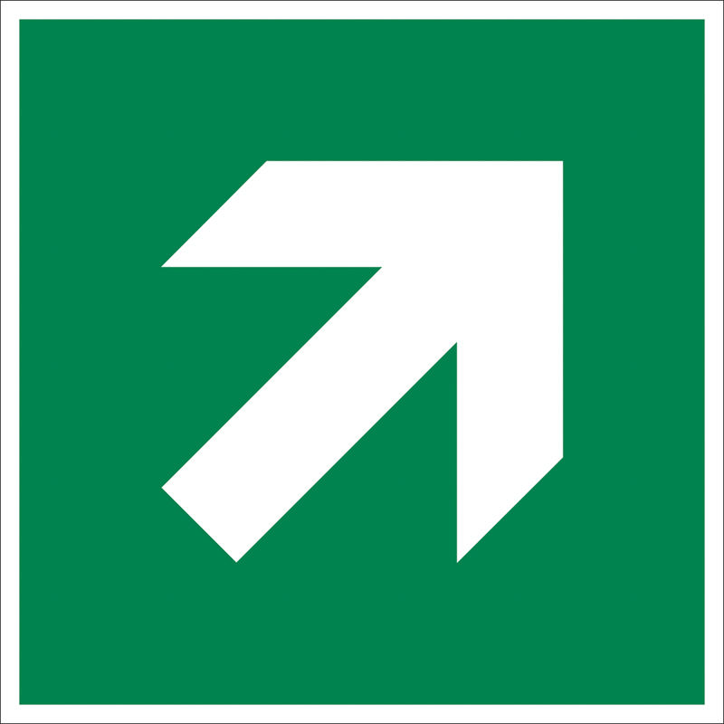 Nödskylt, efterlysande, pil diagonal, 150x150 mm, aluminium, 10 st/fp. Efterlysande skylt som ger snabb och enkelt vägledning vid en nödsituation.