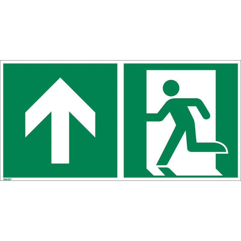 Nödutgångsskylt, efterlysande, uppåt, 400x200 mm, plast, 10 st/fp. Efterlysande nödutgångskylt som ger snabb och enkelt vägledning vid nödsituation. Skyltar i aluminium eller plast, tillverkade i enlighet med ISO 7010/ASR A3.3. Placeras väl synlig och enligt gällande regler. Finns både i dubbelsidig och enkelsidig version. Lyskraft 55 mcd/m2, 2 gånger högre lyskraft än kraven enligt DIN-norm 67510. UV-resistent, för inomhus och utomhusbruk. Det efterlysande materialet lyser i mörker efter uppladdning i dagsljus, LED eller annan ljuskälla. Säljs i förpackning om 10 st per förpackning.
