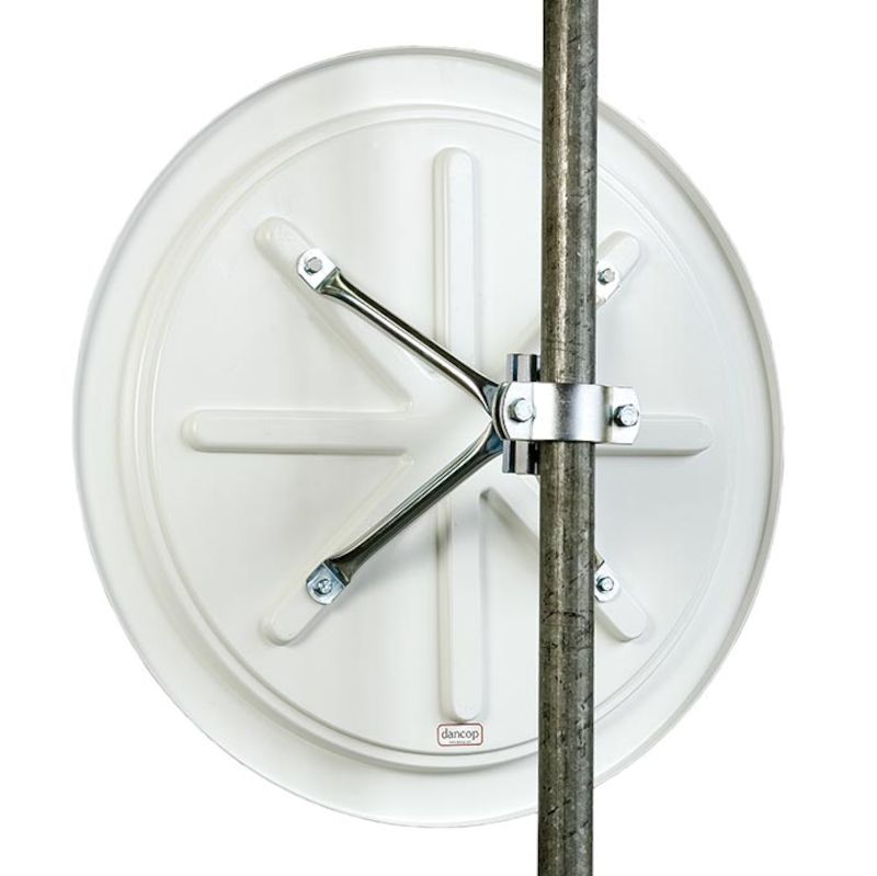 Tätförsluten spegel för ökad livslängd. Kraftig 4-punktsinfästning på baksidan. Smidig inställning av vinkel och lutning. Vindskyddad och godkänd för att klara upp mot orkanstyrka. Stolpfäste för stolpar ø55-85 mm ingår.
