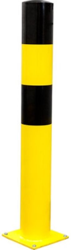 Trafikpollare Janina, Ø 159 mm, väggtjocklek 4,5 mm, för betongfäste. Gul plastbeläggning med svarta varningsmarkeringar.