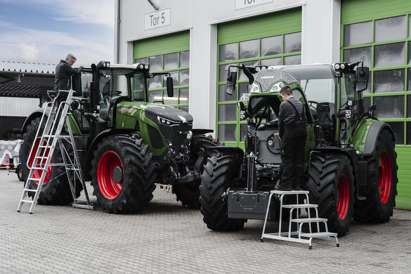 Arbetstrappan är försedd med en wosatec QR-kodetikett för smidig, digital dokumentation av utrustningskontroller.