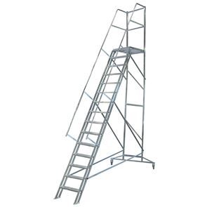 Översta räckpinnen är demonterbar i samband med användning vid lastbryggor och entresolplan. Finns i flera olika storlekar, antal steg är inklusive plattform.