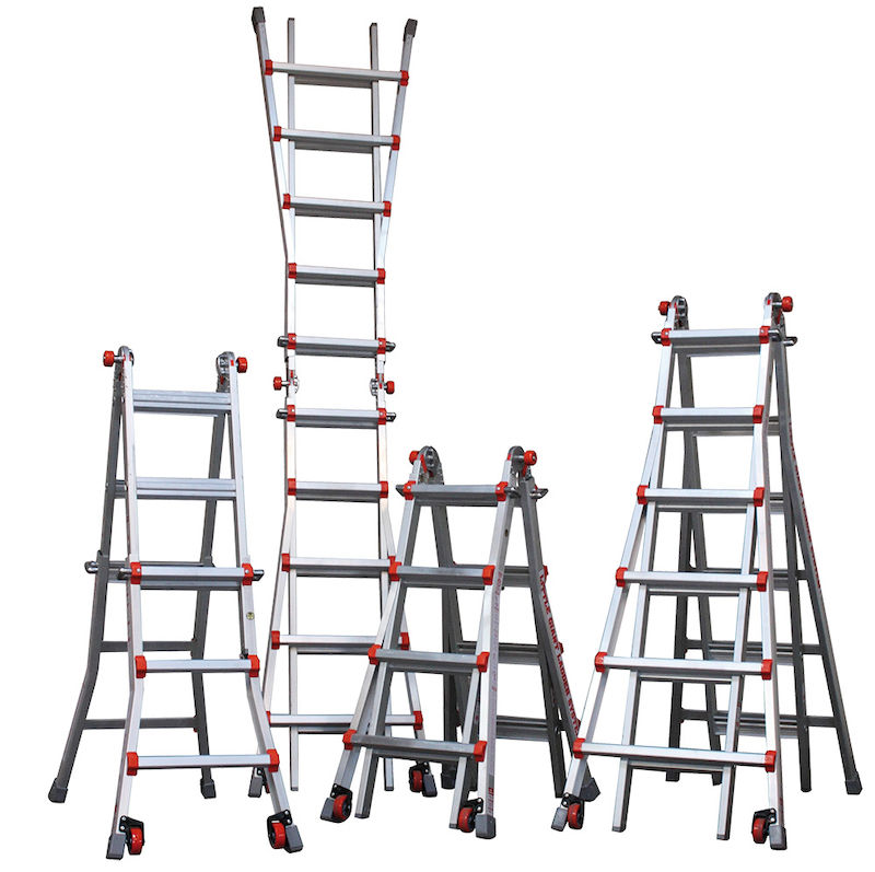Multistegar Classic, 6,4 m. Stegen är tillverkad i aluminium och har en stabil och flexibel konstruktion. Kan användas som fristående trappstege alternativt anliggande enkelstege. Båda sidor har en teleskopfunktion vilket gör att stegen kan användas i en trappa eller på andra ställen med nivåskillnad.