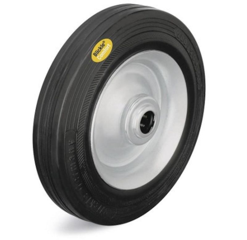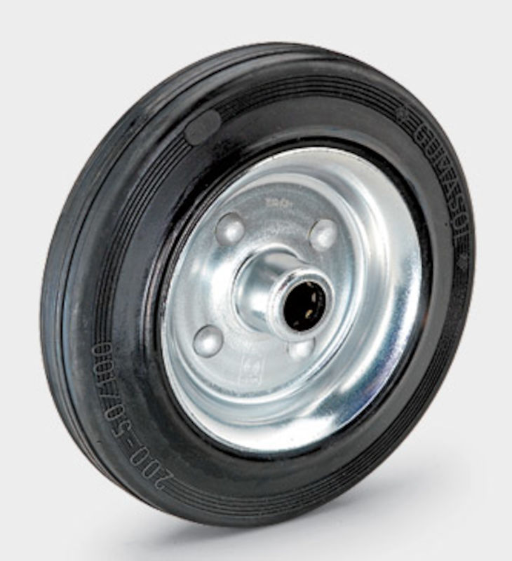 Halvelastiskt hjul, stålfälg, löst hjul, rullager, ØxB 125x38 mm, max 120 kg. På stålfälg med högt slitagemotstånd. Förbättrat igångkörningsmotstånd. Temperaturbeständigt från -5 °C till +80 °C. Hus av stålplåt, galvaniserat-kromat, styrspindel med dubbel kulkrans, styrspindelskydd, fälgar av stålplåt, blankgalvaniserade. Rullager.