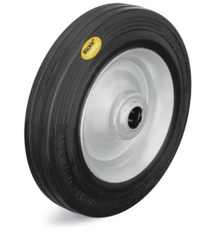 Halvelastiskt hjul, stålfälg, löst hjul, rullager, ØxB 140x38 mm, max 150 kg. På stålfälg med högt slitagemotstånd. Förbättrat igångkörningsmotstånd. Temperaturbeständigt från -5 °C till +80 °C. Hus av stålplåt, galvaniserat-kromat, styrspindel med dubbel kulkrans, styrspindelskydd, fälgar av stålplåt, blankgalvaniserade. Rullager.