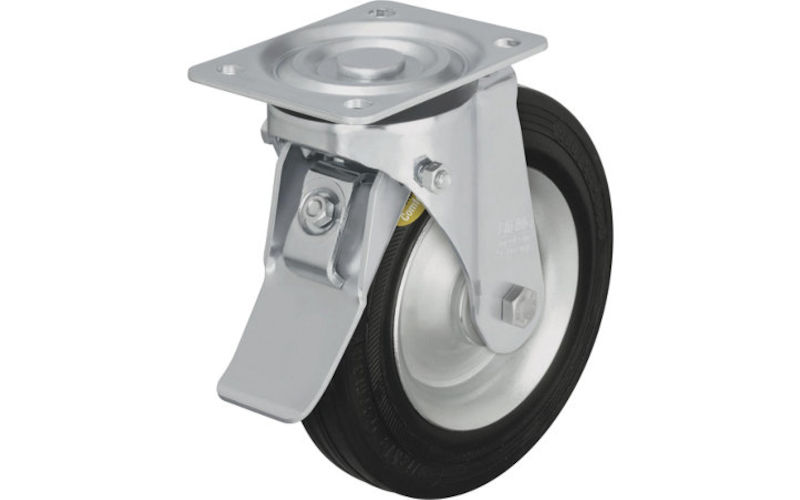 Halvelastiskt hjul, stålfälg, ØxB 250x60 mm, fast hjul, max 300 kg. På stålfälg med högt slitagemotstånd. Förbättrat igångkörningsmotstånd. Temperaturbeständigt från -5 °C till +80 °C. Hus av stålplåt, galvaniserat-kromat, styrspindel med dubbel kulkrans, styrspindelskydd, fälgar av stålplåt, blankgalvaniserade. Rullager.