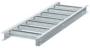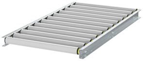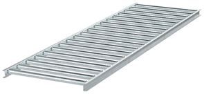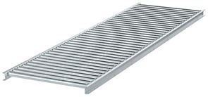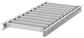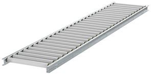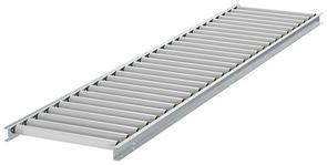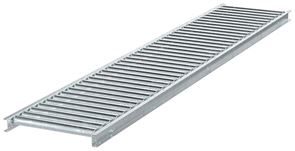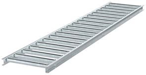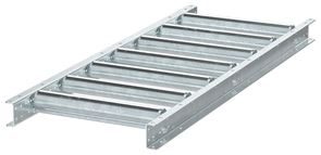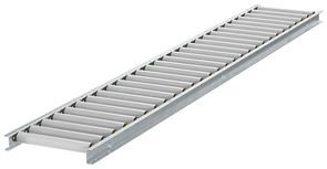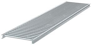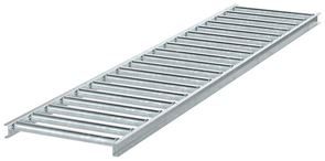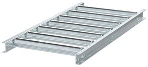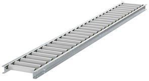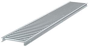 Stabil U-formad sidoprofil 70 mm med håldelning på c/c 26,3 mm. Rullarna sticker över 5 mm. Rullarna i diameter 50 mm har en fjädrande axelände samt lagerhus med stålkulor anpassade för att rulla lätt även för lättviktsgods.
