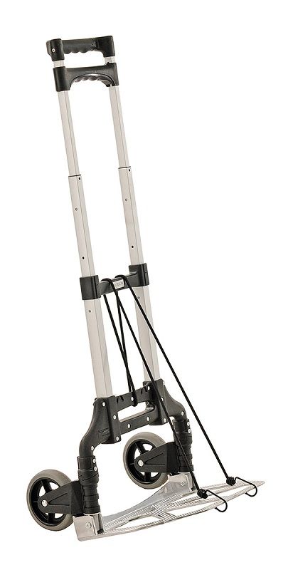 Säckkärra Hopfällbar, max 60 kg. Lätt och smidig säckkärra i aluminium. Fälls med lätthet ihop för transport och förvaring. Finns i tre modeller med en lastkapacitet på 60, 125 och 180 kg. Med en kraftig konstruktion i aluminium är den hopfällbara säckkärran ett smidigt alternativ även för tunga laster. Tar väldigt liten plats ihopfälld, enkel att stuva undan och förvara. Utmärkt för mindre typer av transporter, t.ex. paketbil eller liknande.
